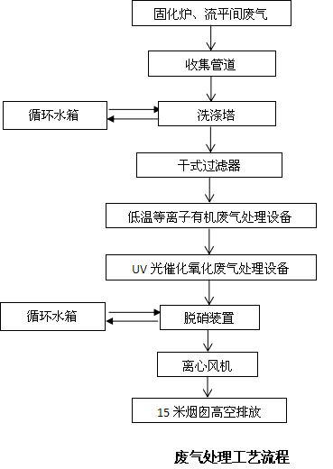 我公司采用洗滌塔預處理+干式過濾器+低溫等離子+UV光解催化+脫硝裝置主體工藝,治理貴公司氟碳生產(chǎn)線固化爐廢氣。