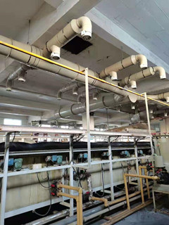 山東華太新能源電池有限公司的廢氣主要來源蓋帽生產線和鋼殼生產線產生的硫酸酸霧,該酸霧有很強的腐蝕性。廢氣處理量為50000m3/h,兩條生產線產生的廢氣如何有效的收集是影響整套廢氣處理系統的主要因素,我公司通過現場考察和結合近年來積累的經驗,在廢氣收集方面采用獨特的收集系統。